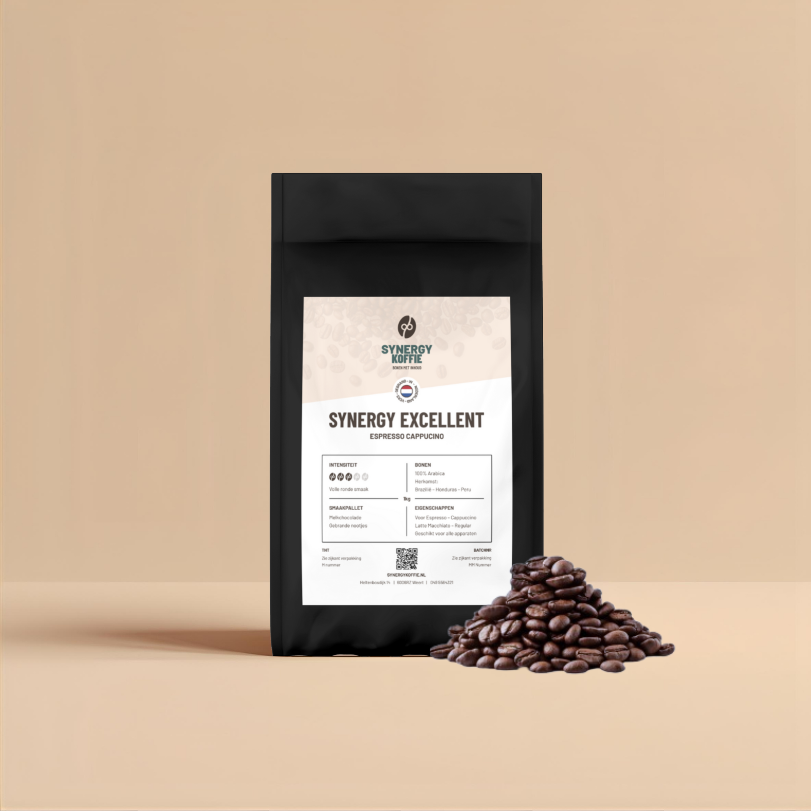 - Synergy Excellent – 100% Arabica, vol en rond van smaak met een lange, aangename afdronk. Voor de liefhebber, thuis én op kantoor.